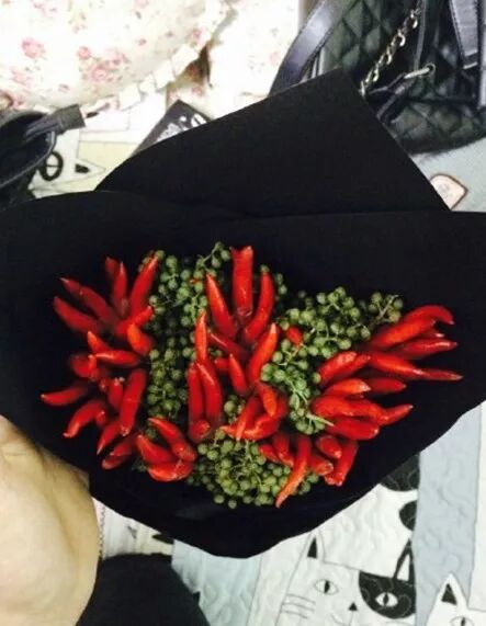 去重庆的时候更夸张了,都不是蔬菜拼盘那么简单,直接送的是花椒和朝天椒,我的天。