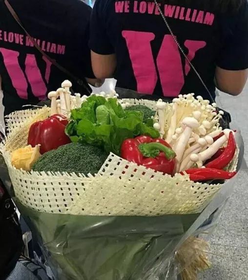 于是陈伟霆在机场收到了火锅花礼物,里面有金针菇红辣椒西兰花和青菜叶子,整个就是火锅店配搭的蔬菜拼盘。