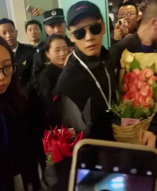 整个接机画面,感觉火锅花格外抢镜。