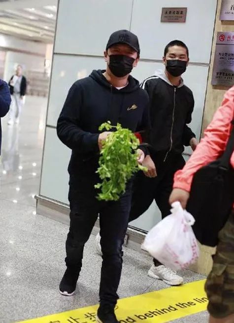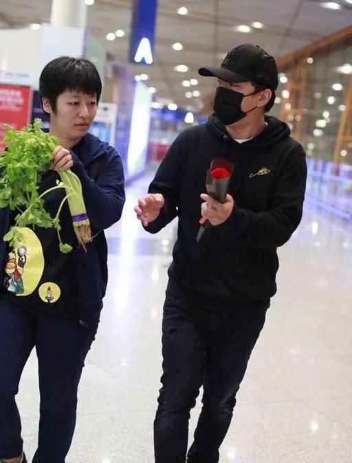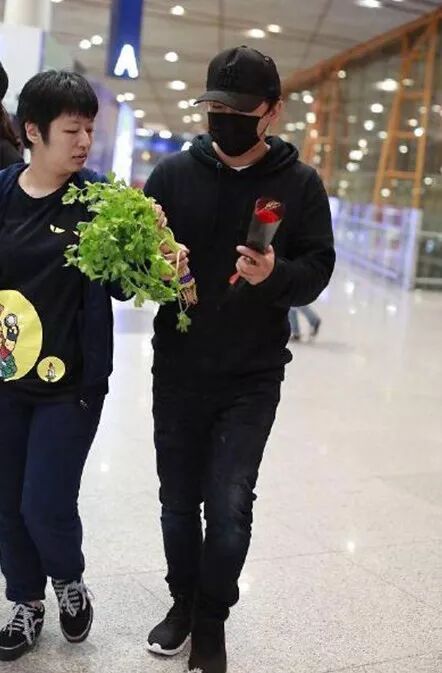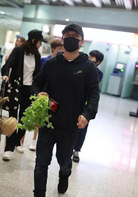 原来是黄渤现身机场,有粉丝送给他一把芹菜和一支玫瑰花。渤哥这套机场look画风也是real清奇了。