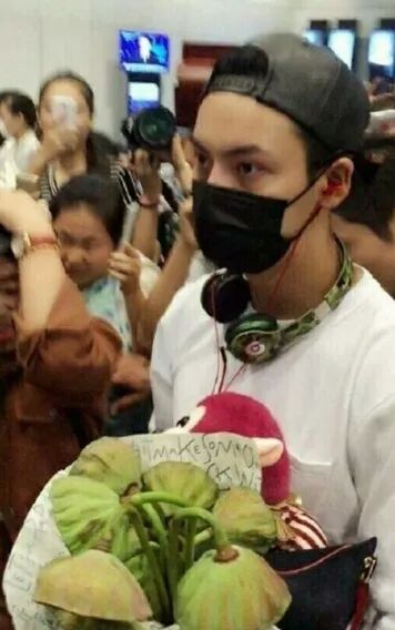 除了火锅花,陈伟霆还在机场收到过一大捧的莲蓬。