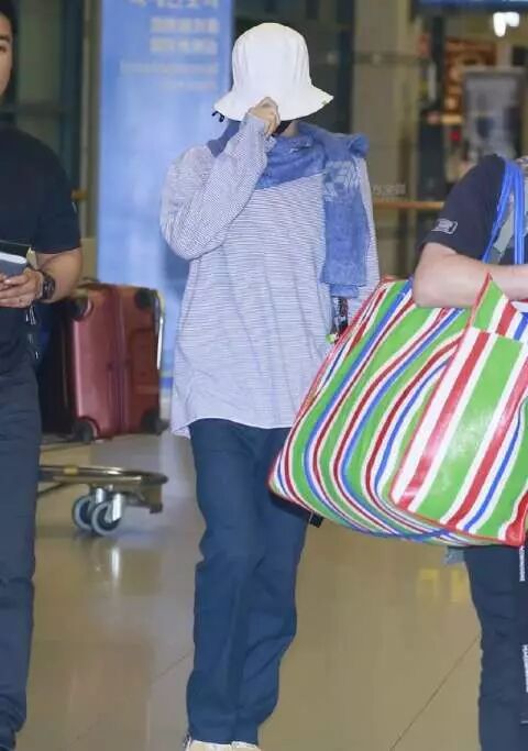 浅色条纹上衣搭配深色休闲裤和平底布鞋,挺低调的穿搭主要是以舒服为主,机场秀穿成这样看着还蛮舒服的。话说权志龙忙着走路鞋带掉了都没空理。
