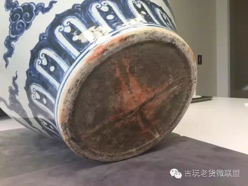 仔细看,火石红斑下是细腻,致密,洁白的胎体,体现了宣德时期瓷土淘炼的精细。