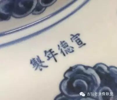 “宣德年制”四字款,德字心上少一横笔,是宣德官窑款特征之一。