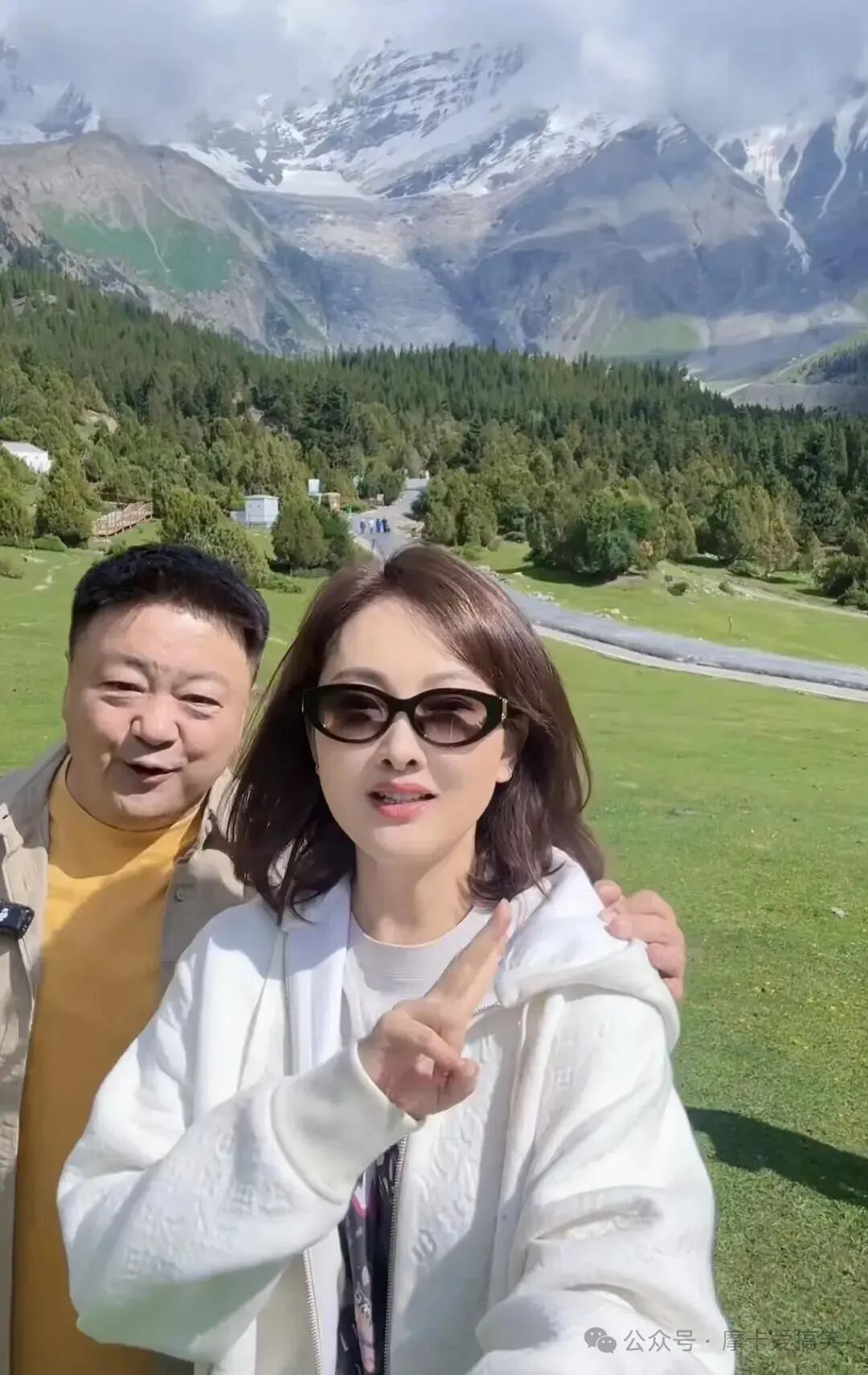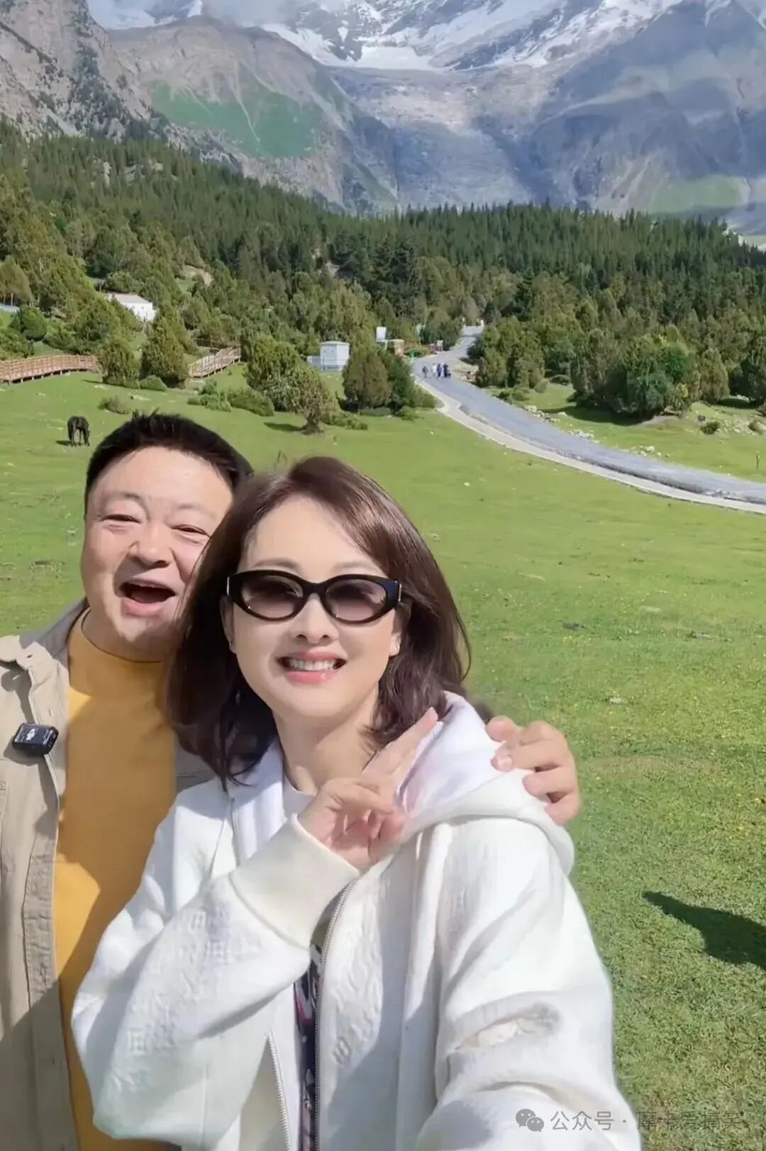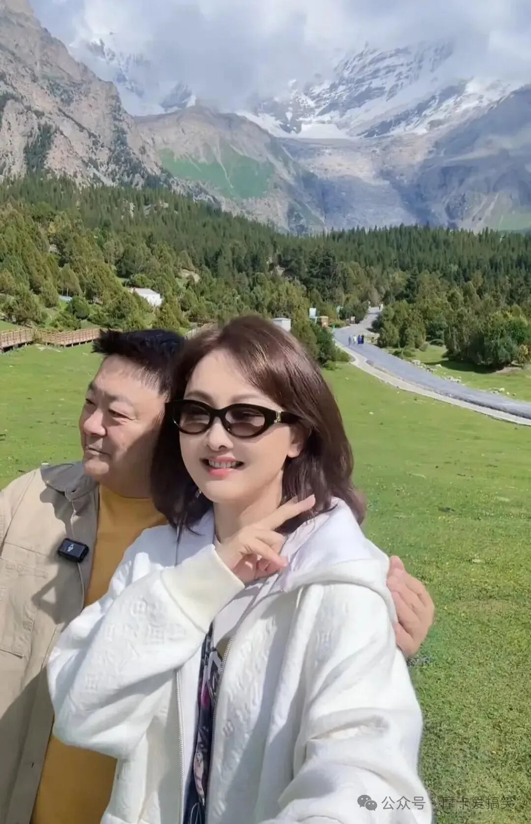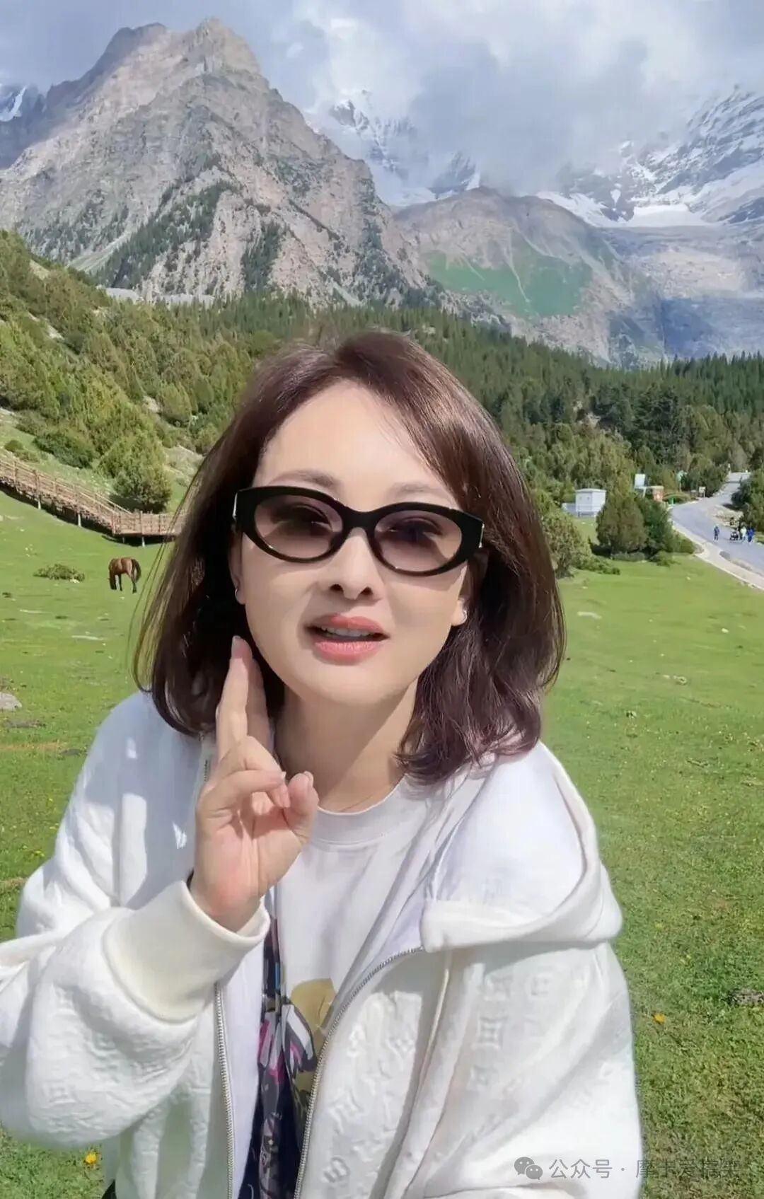 视频的亮点是她身后那宛如画卷的景色:翠绿的草原延伸至远方,郁郁葱葱的树林与巍峨耸立的雪山形成鲜明对比,这令每一个观看者都心生向往,仿佛能感受到那份大自然的魅力。