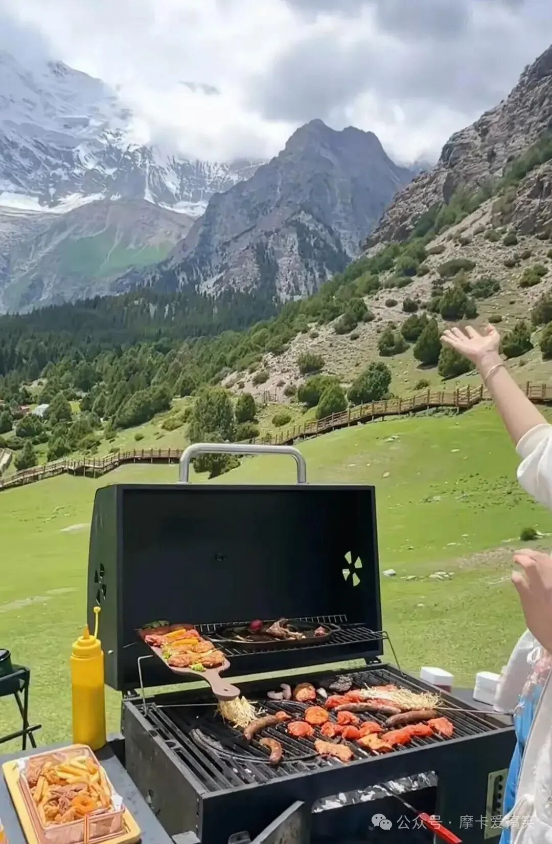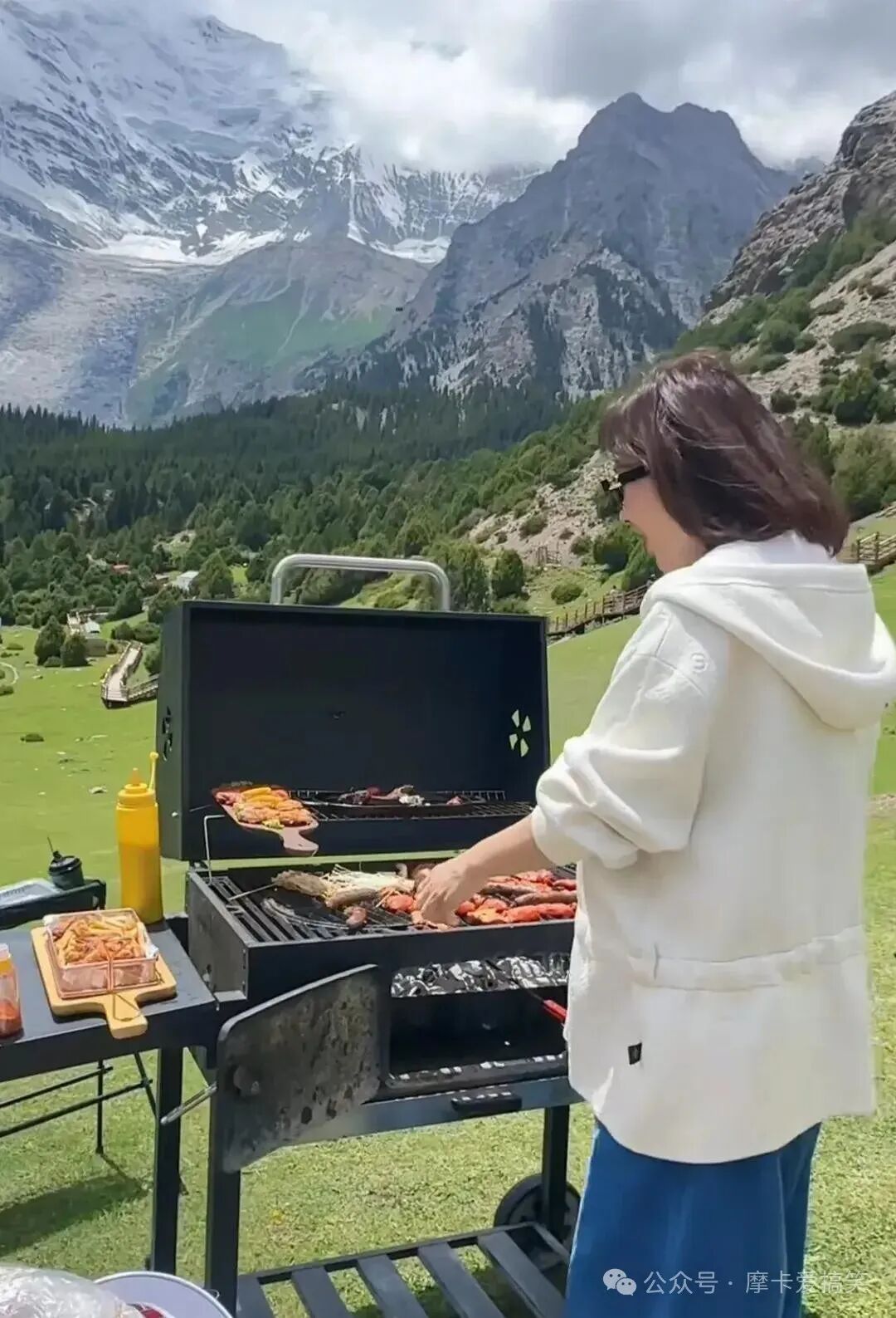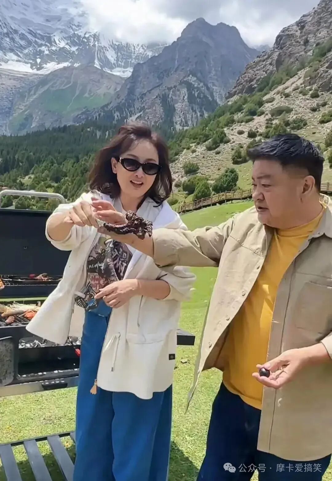 这一番话让牛莉忍不住放声大笑,她感慨万分地望着眼前的雪山,感叹道:“这里的景色美得令人窒息,我们虽然在烤肉,但丝毫不觉炎热,反而感到无比舒适。”