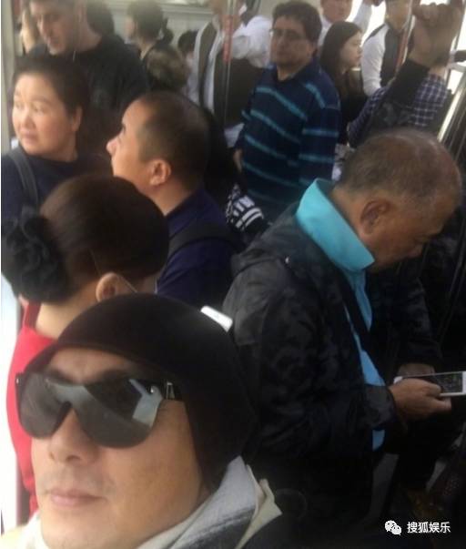 原来他跑去挤公车了,配图上周围的乘客不是在看风景就是玩手机,并没有认出身边这位明星