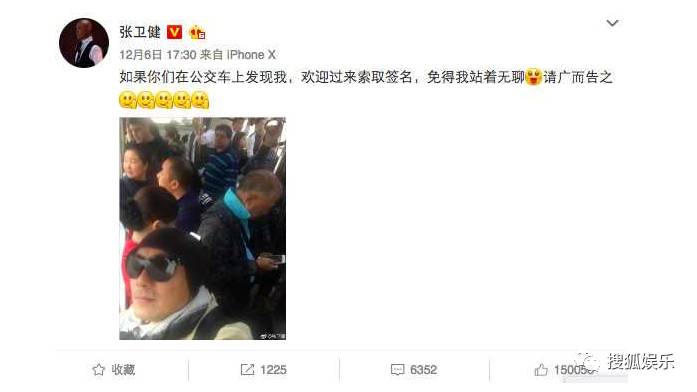昨儿,张卫健在微博发文打趣:“如果你们在公交车上发现我,欢迎过来索取签名,免得我站着无聊……”