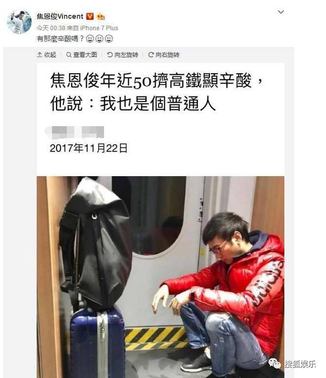 对此,焦恩俊说自己也是一个普通人,可有报道称焦恩俊挤高铁显辛酸,这让焦恩俊哭笑不得。