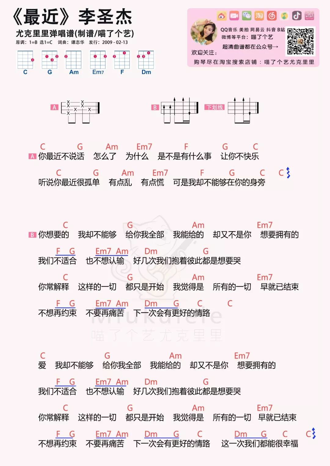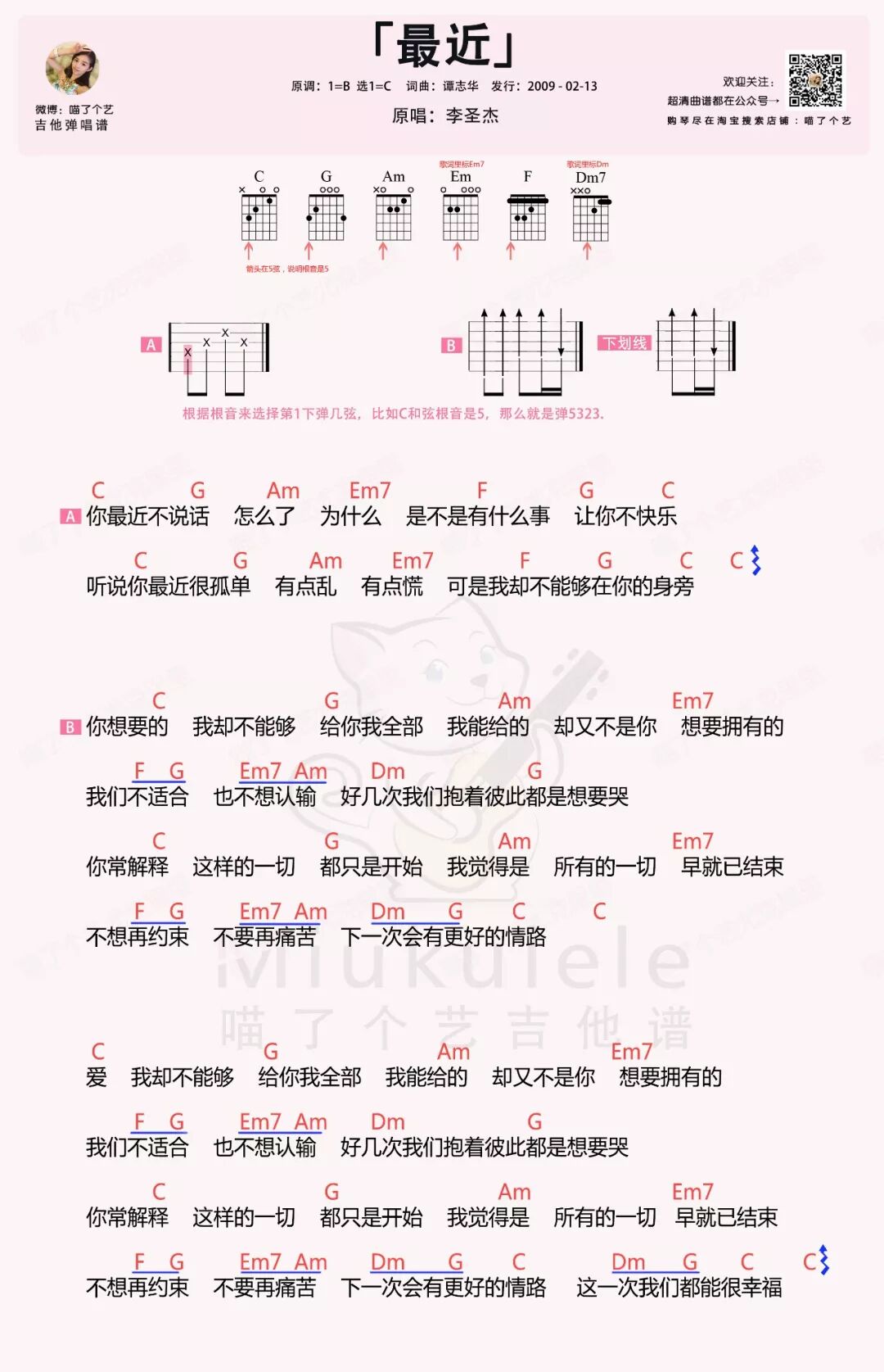 曲谱分享:李圣杰《最近》 喵了个艺 港台男星 2019-04-25 22:25:49 6552 创作不易,用心坚持,欢迎请BaGua喝几杯爱心咖啡!打赏并支持本文 打赏并删除本文 《最近》李圣杰演唱的歌曲。收录于专辑《孤鸾疗伤版》中。歌曲音频KTV版尤克里里曲谱吉他曲谱如果还有想要出的弹唱谱,欢迎留言哦。欢迎右下角点‘在看’哦♥ ,你的点赞,是出谱的最大动力,么么哒。留言· 点歌 创作不易,用心坚持,欢迎请BaGua喝几杯爱心咖啡!打赏并支持本文 打赏并删除本文 感谢您的支持鼓励,我会继续努力的!文章地址:用户邮箱:打赏金额:USDT 请输入数字点击”去打赏“,即可进行打赏支持本文章哦 李圣杰 About the Author 喵了个艺 功能介绍:尤克里里弹唱\曲谱\教学分享 官方认证:厦门市同安区喵了个艺文艺工作室 Related Posts 超还原版《i believe》尤克里里弹唱 \ 范逸臣版 2022-04-13 22:09:10 曲谱分享: 黄义达《那女孩对我说》说我保护她的梦 2019-08-24 21:40:05 爱你是孤单的心事|蓝又时《孤单心事》吉他弹唱 2019-05-18 23:58:48 曲谱分享:李圣杰《最近》 2019-04-25 22:25:49 陈柏宇《永久保存》 唱得太动听 | 尤克里里曲谱 2019-03-11 22:21:47 发表评论
