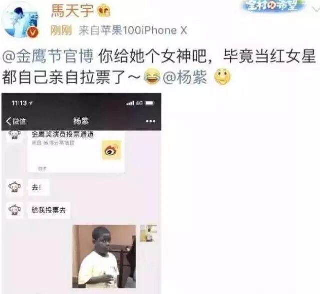 马天宇微博发了杨紫要求帮她金鹰女神拉票的活动,说实话马天宇这发微博的做法有点不妥啊,让杨紫多尴尬,为朋友拉票是很正常啊,但是你这样发出来就……