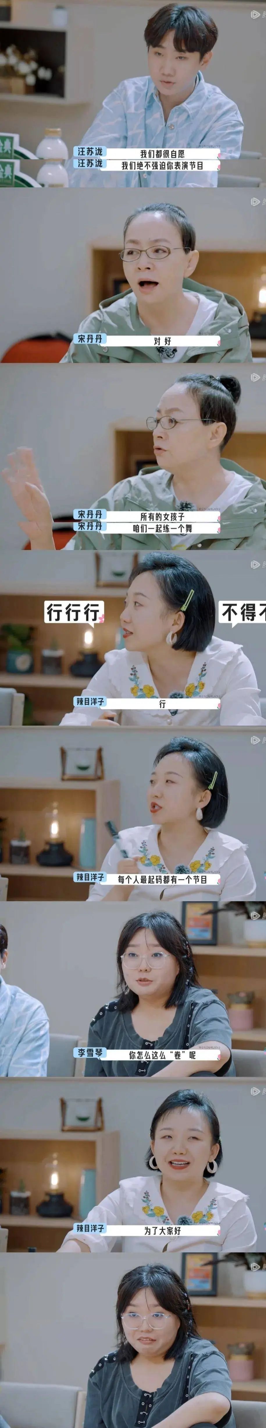 宋丹丹还提出举办文艺晚会,并且每个人都要表演节目,这简直就是社恐的死亡现场,而社恐的李雪琴就第一个站出来反对,这次反对让宋丹丹直接暴怒:“你们什么都不会演,让你们来干什么”。