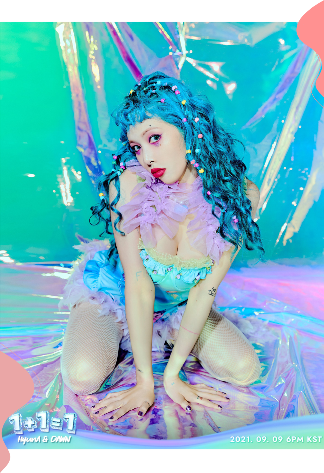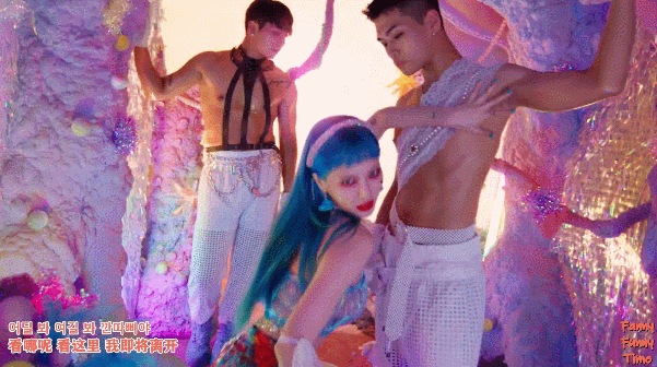 虽然泫雅在MV中的造型多变,但最瞩目的还是她那一头精灵蓝发!