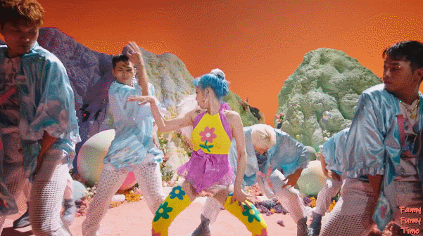 整体画面是五颜六色、五光十色、五彩斑斓,看得我是眼花缭乱、目不暇接,看完整个MV我的感觉是:眼睛有点累。