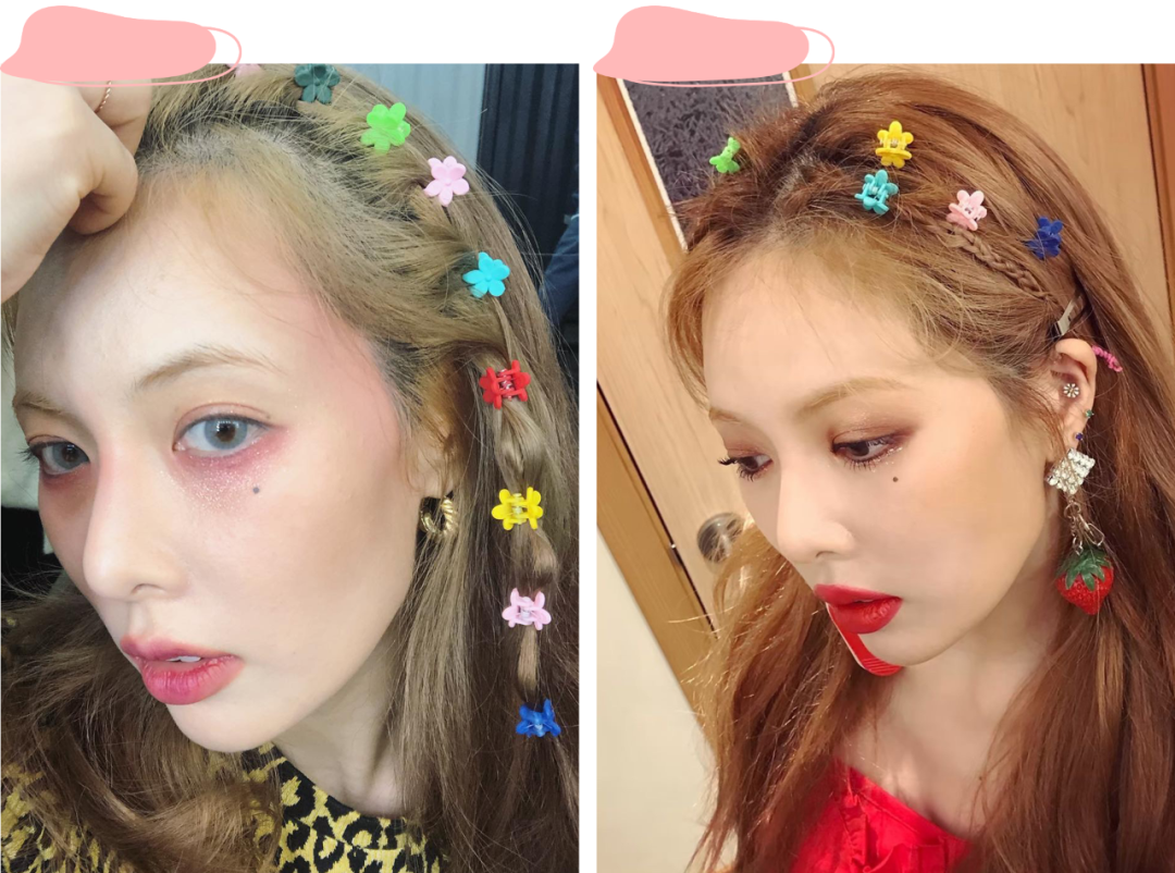 彩色发夹的潮流真的是火出圈!我记得吴宣仪曾经就很喜欢用花花绿绿的小圈圈和小抓夹,特别少女~