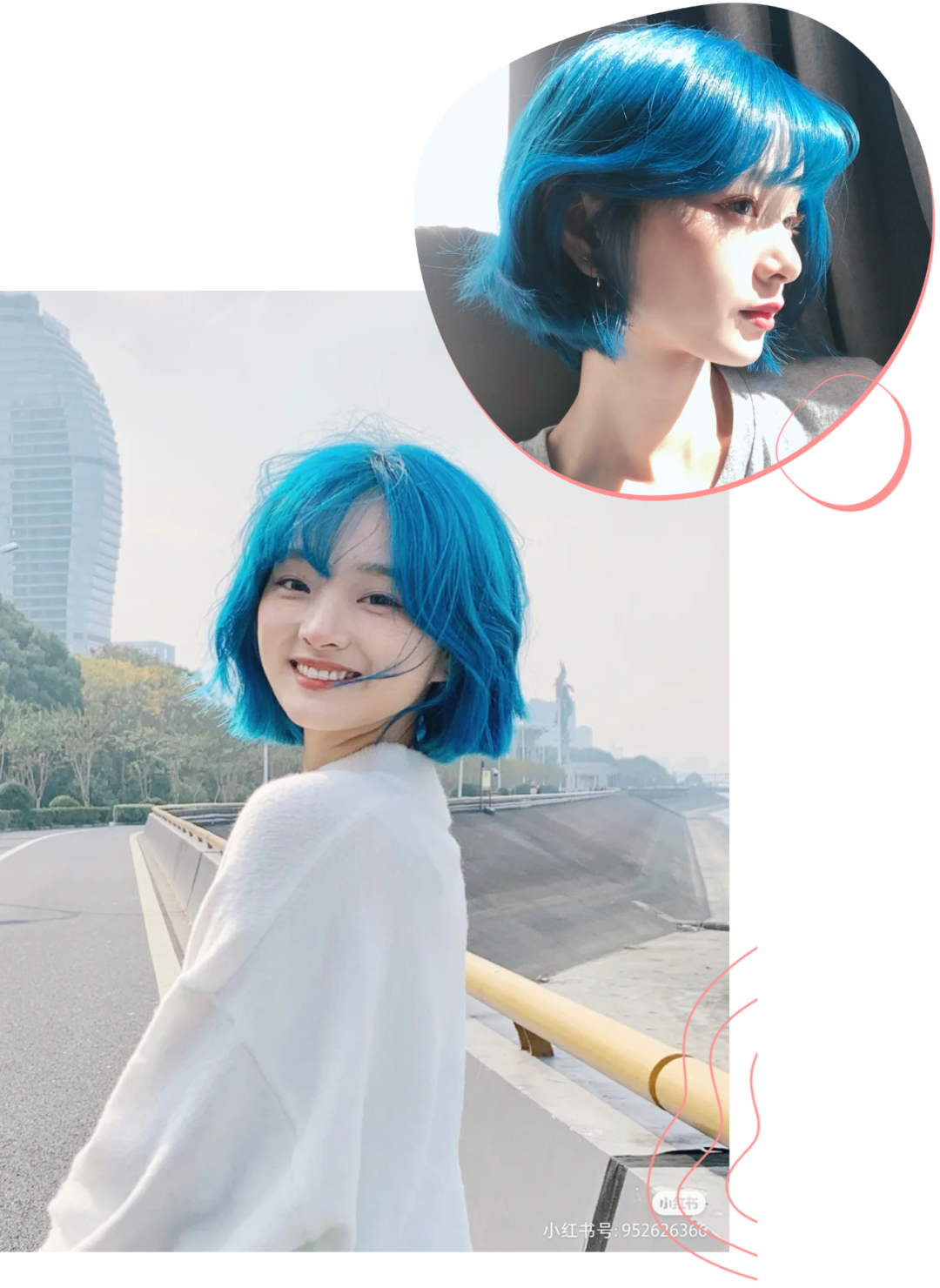 阳光下的精灵蓝发会有一种通透感,我建议白皮的姐妹一定要去试试看!会衬得你的皮肤更白!