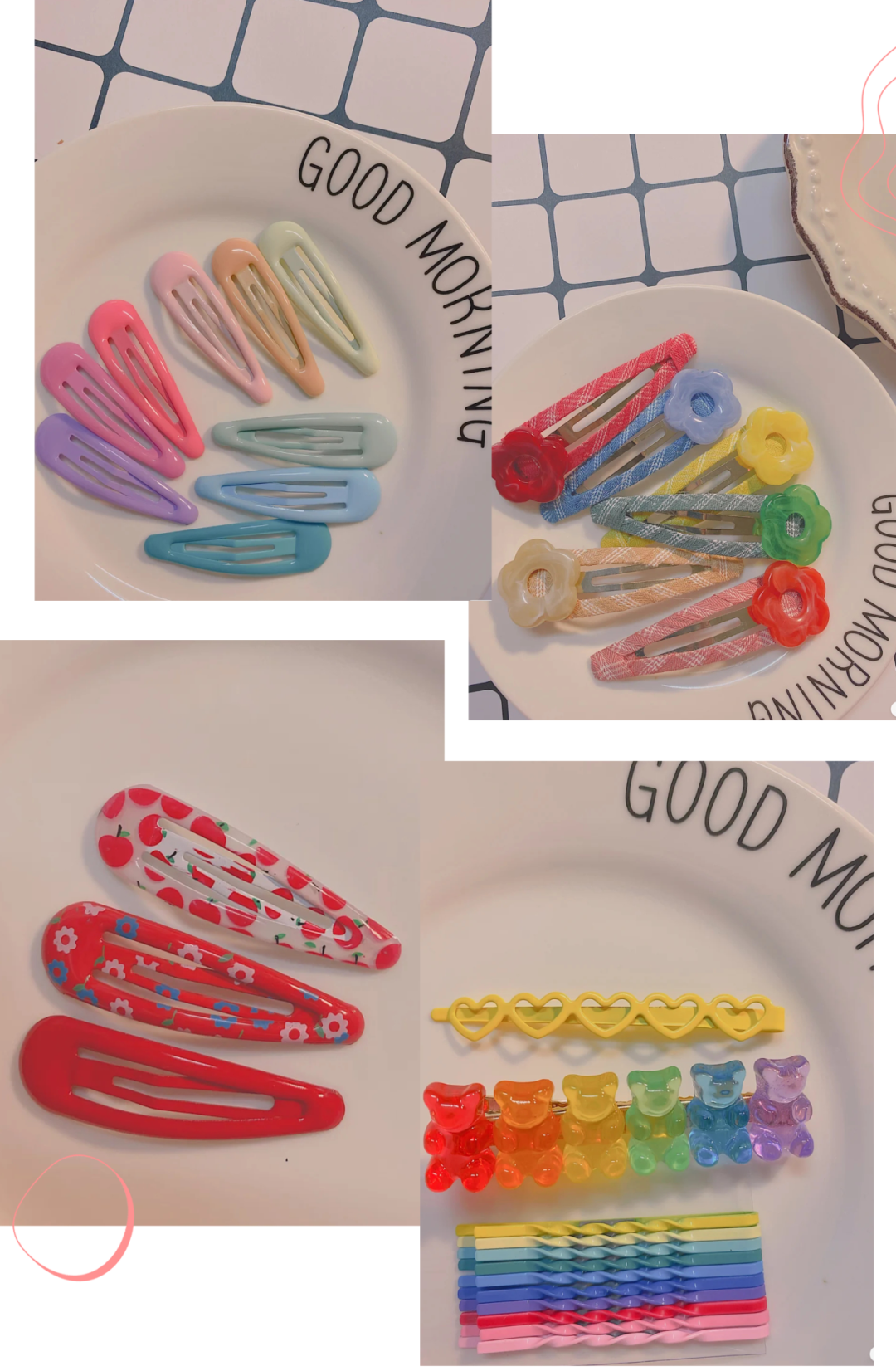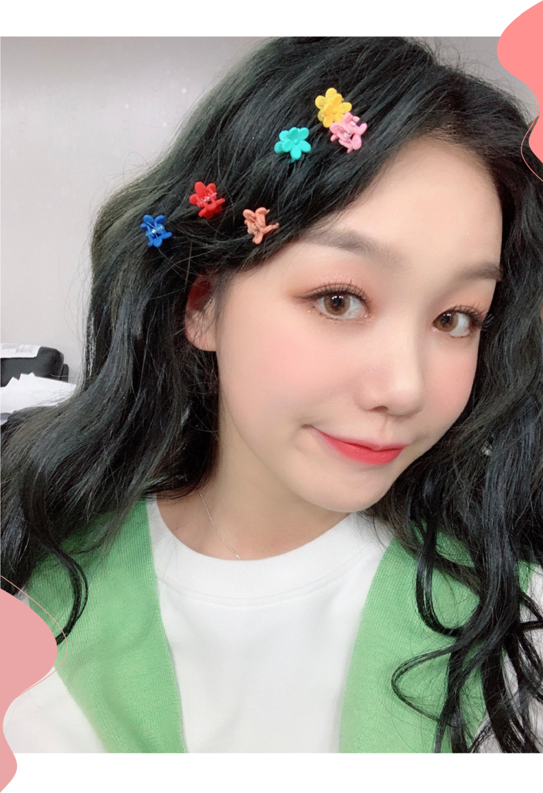 除了这种小小的抓夹和圆圈圈之外,泫雅也很喜欢五颜六色、各种形状的边夹。