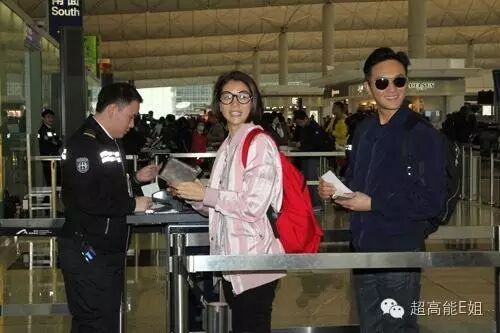 还有张智霖和袁靓靓这对更资深的老夫老妻,机场同框图是这样的: