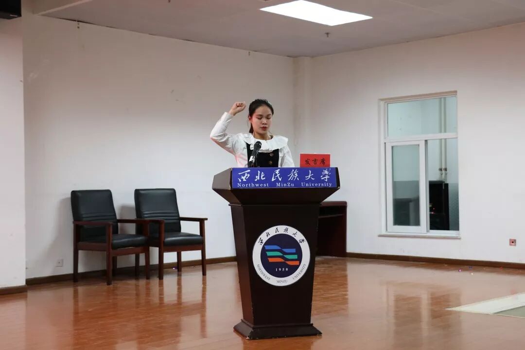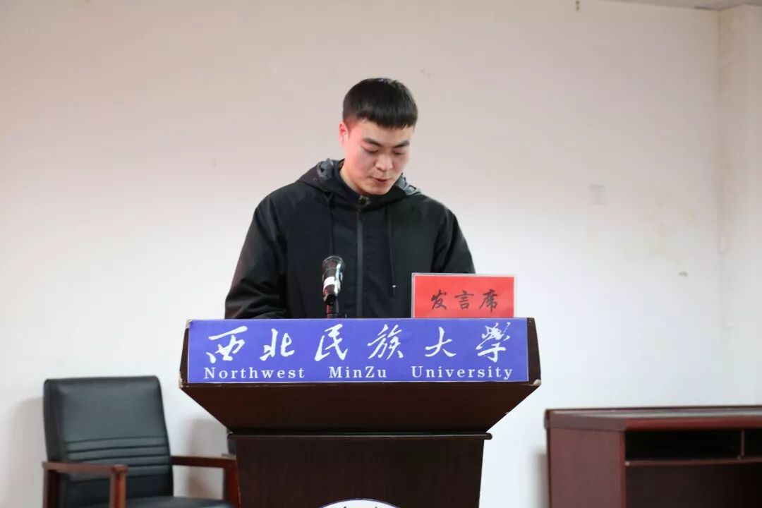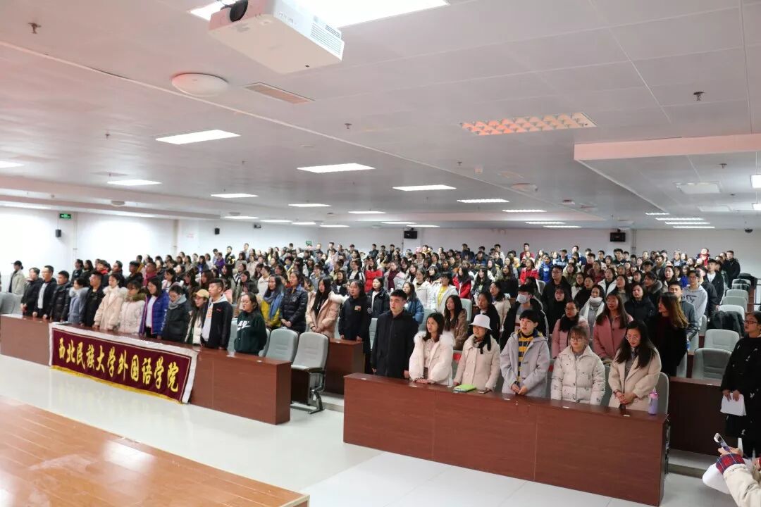 第二部分为考风考纪动员大会。首先由张荣副院长就2018-2019学年第一学期期末考试安排及考试有关规定进行说明,李东海老师宣读了《西北民族大学有关考试违规行为的认定与处理相关规定》,之后,我院学生代表韦艳霞同学做诚信考试承诺。最后由外国语学院党委书记丁胜做大会总结。他首先对受到表彰的学生表达了肯定和祝贺,希望每位同学能够以此为榜样,树立远大的目标,养成良好的习惯,珍惜大学时光,努力奋斗;并要求同学们端正考试态度,诚信考试。最后,全体师生共同观看了由外国语学院同学自导自演的考前警示教育片,再一次警示同学们要遵守考试纪律规定,诚信考试。