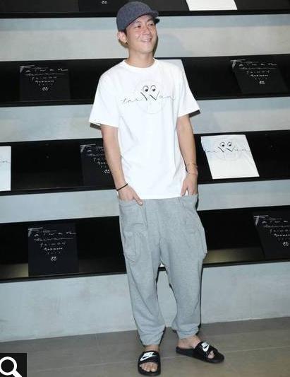 9月22日,陈冠希到台北出席潮牌活动,一下飞机他连衣服都没换就赶到现场,只穿着白T恤、灰色运动裤,还脚踏拖鞋,须根也清晰可见,散发出浓浓的大叔味。