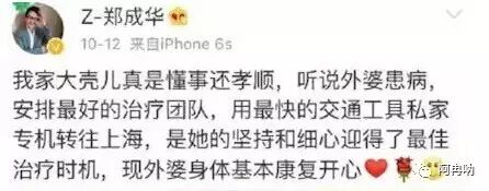 郑爽爸爸一贯高调,发微博毫不忌讳说郑爽给外婆搞了私人飞机到上海看病。(这样真的好么)