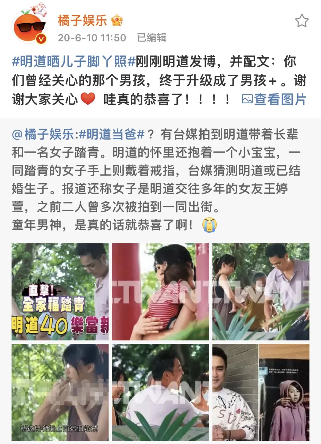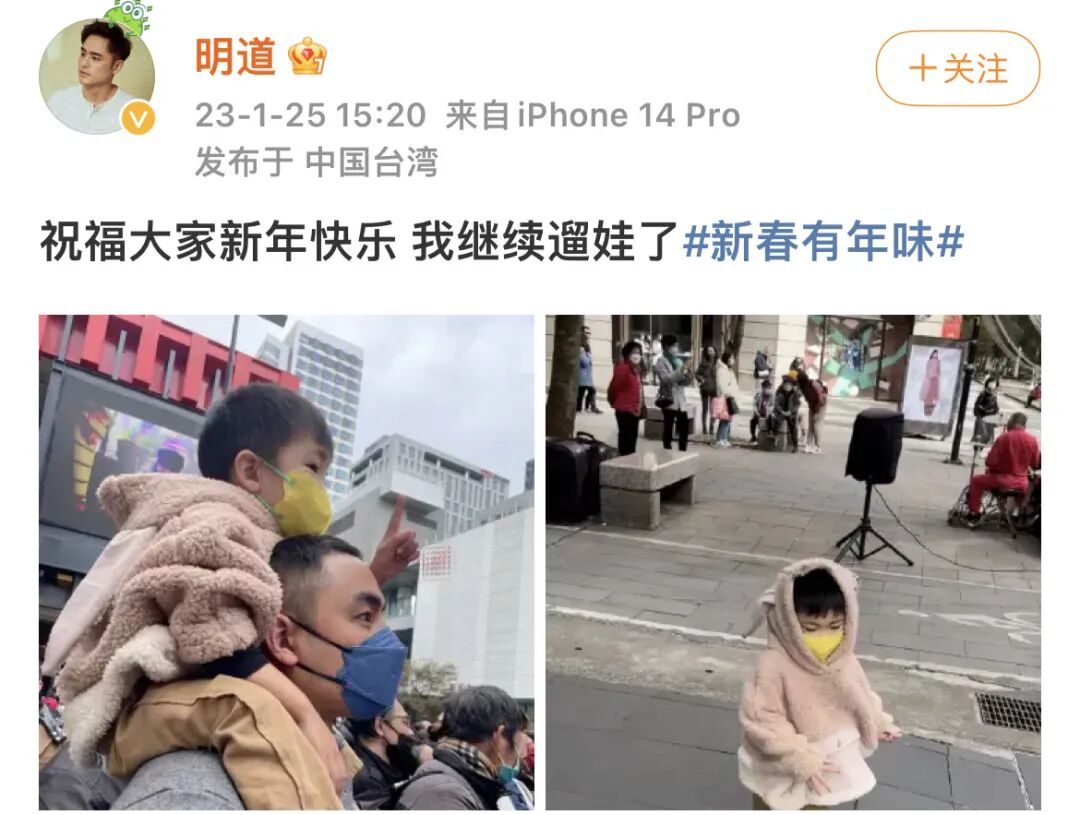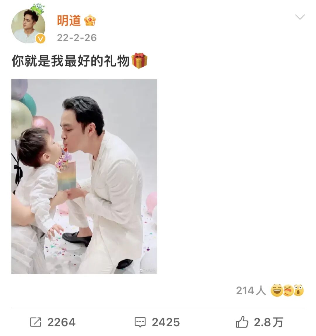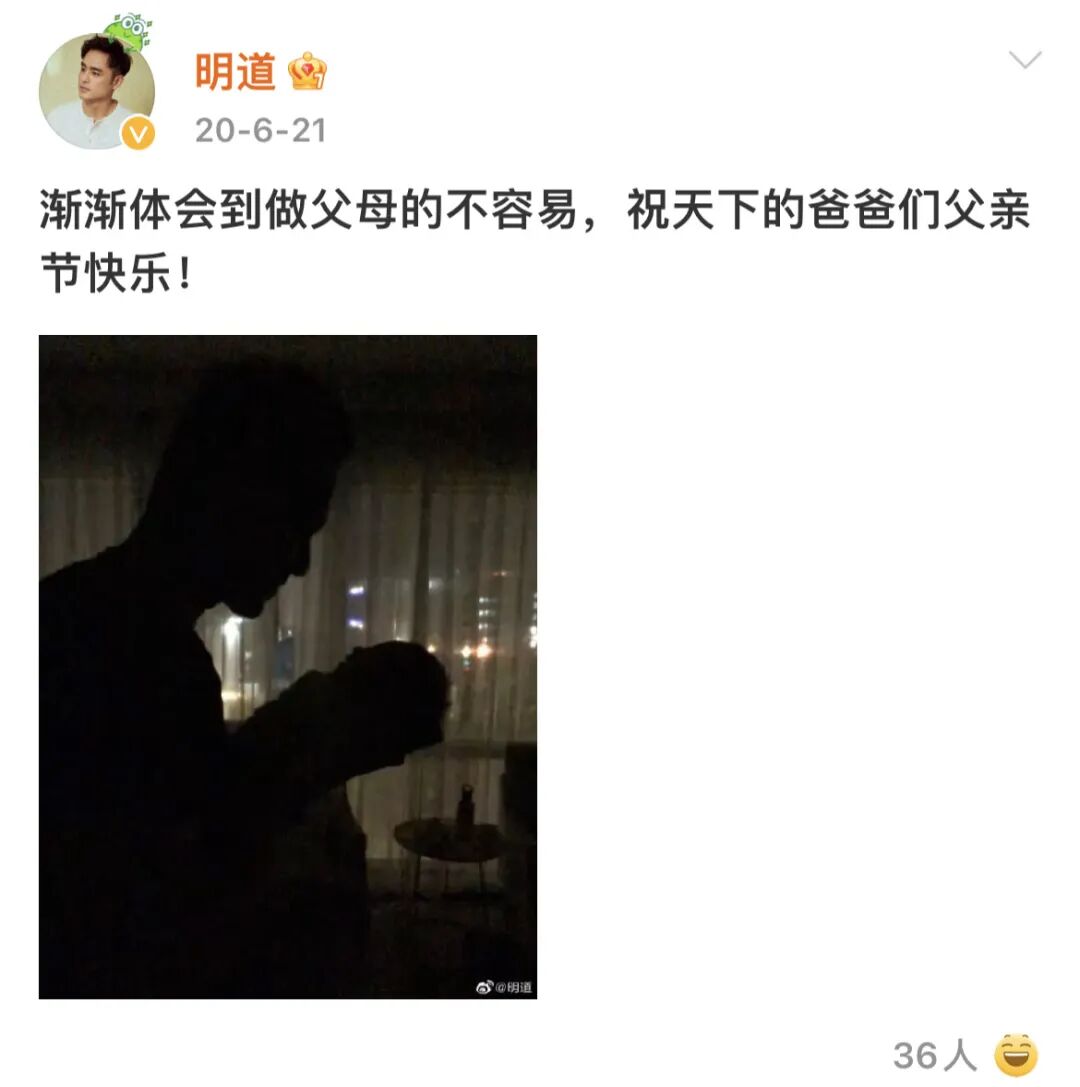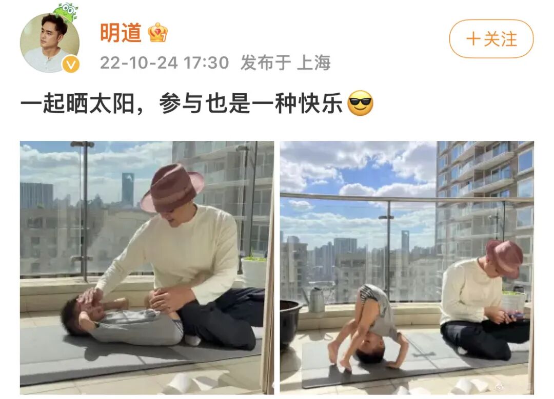 在儿子出生后,明道也渐渐适应了父亲的身份,