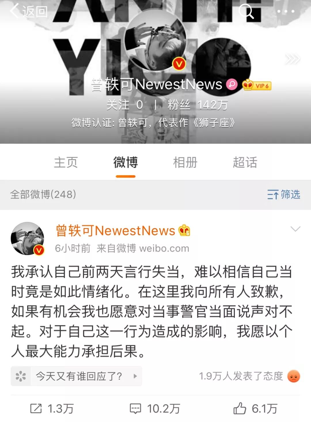 不过故事的反转出现在6月19日中午,之前言语之间怒气冲冲的曾轶可在社交平台公开道歉,称自己言行失当,找了一个“情绪化”的借口。还表示要“找机会”跟当事人道歉。