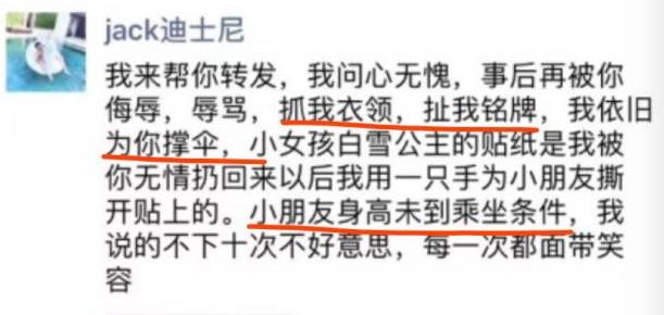 随后,游乐园工作人员也在网上发布了自己被抓伤的照片,并表示园方出于对儿童安全的保证并无刻意刁难,因此反而遭受到来自黄小蕾的辱骂和撕扯。