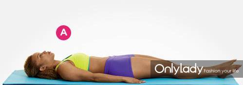平躺在垫子上,两腿并拢,两手平放在身体两侧;