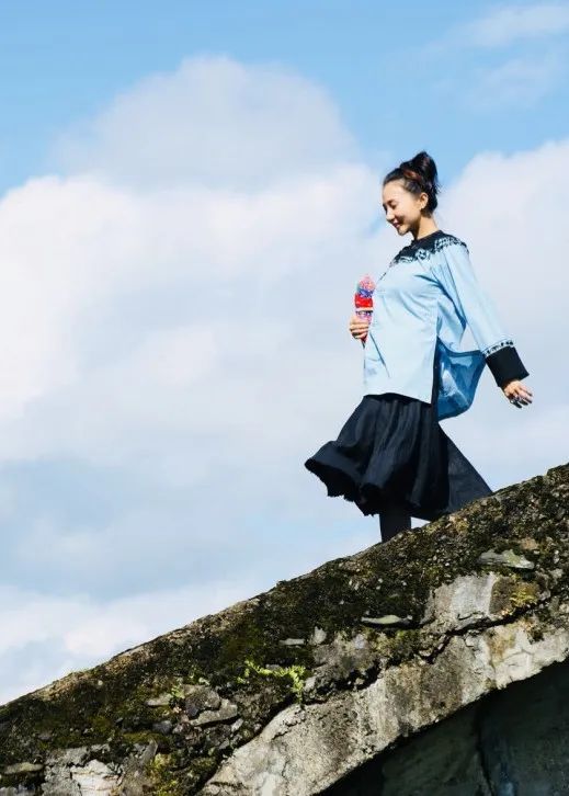 她重新开始拾起蜡染技术,自己亲手染布料做衣服,还跑回湘西,学起了苗鼓,5个月的时间,她成为苗鼓这个国家非遗项目的传承人。