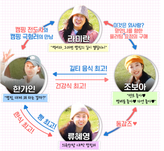 멤버들의 조합은 연예계 소문난 캠핑 전도사인 라미란을 중심으로 완성됐다.