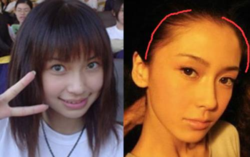 这时候的AB削了下颌正了上颚下颚、内推颧骨,能看出来脸型很消瘦,但是你们发现没发现,她的额头和太阳穴很凹陷,所以AB很聪明的知道自己的脸型还不够美,就开始用刘海来遮...