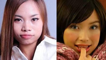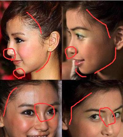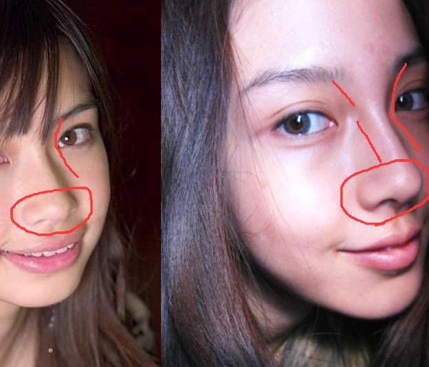 同个角度的对比图是酱紫的,不用我说乃们也能看出来了吧,左图是16岁(已经隆鼻),右图是26岁。