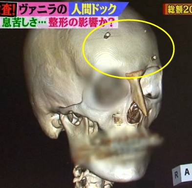 开始了膨体垫太阳穴、膨体垫额头、在改变脸型的时候,她的鼻子也同时进行了二次手术~PS:再说一下,看到这张照片,我们可以看出是额头凸起了两块。其实她额头上的假体是T字型的。