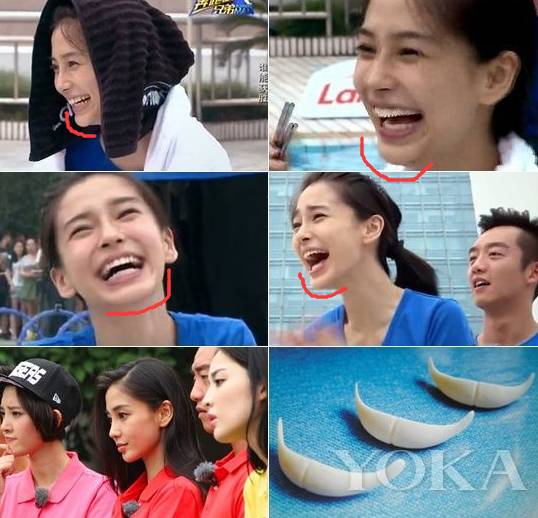 再来看AB的饺子下巴,在《跑男》团里的照片会发现,下巴确实及其不自然。