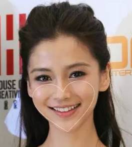 多说几句,Angelababy有着让人羡慕的心形脸。心形脸算是最有女人味而且最最显嫩的脸型,脸颊部分肉肉的,从耳朵下面一直到下巴会越来越窄,像一颗心一样,不但显嫩还上镜。所以说光有苹果肌还不够呢~要注重整体的搭配。