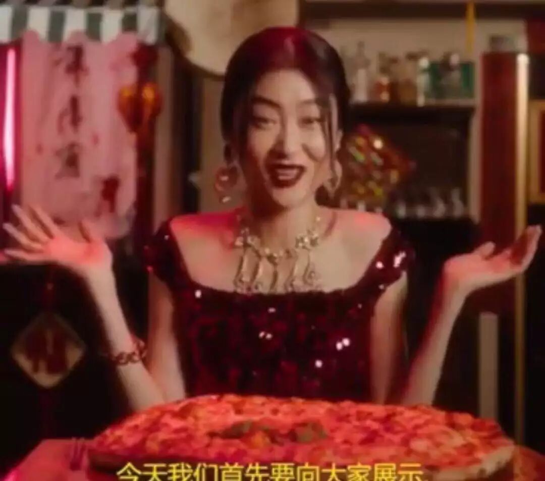 模特用奇怪的姿势使用筷子吃Pizza等片段