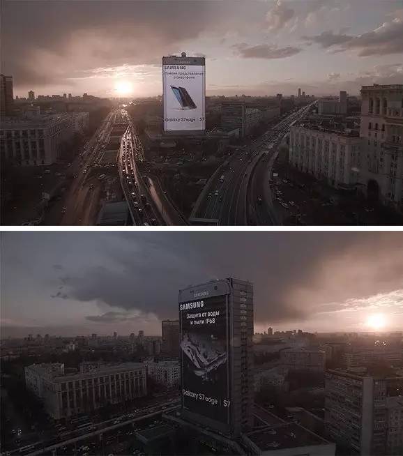 近日,三星在莫斯科Sokol宾馆的旁边竖立起了一个巨大的广告牌,这块广告牌的内容没有别的,直接将一栋大楼变成了显示屏背景墙。远远望去,就像一部巨大的Galaxy S7 Edge竖立在街头。