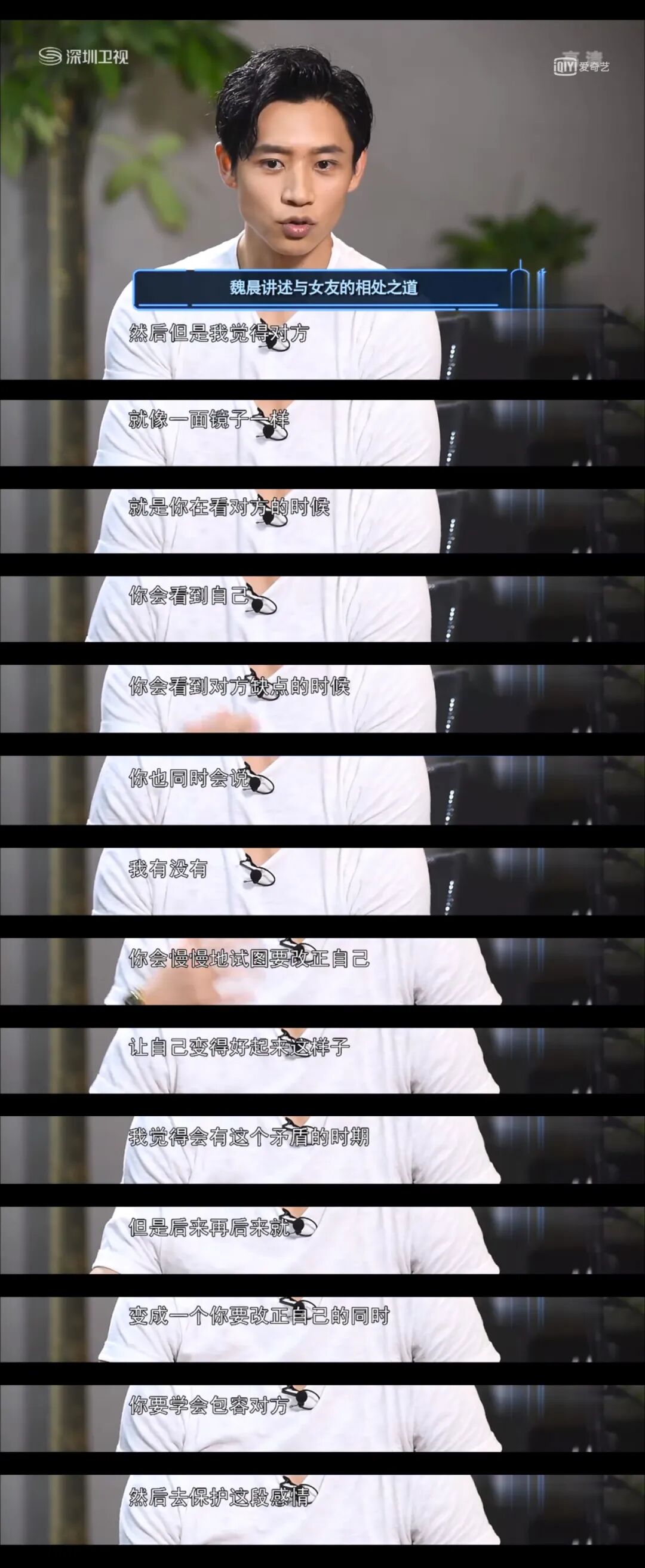 在我看来,魏晨属于那种不会搞花里胡哨浪漫桥段,向往平淡长久的关系,很踏实很有责任感的男孩。