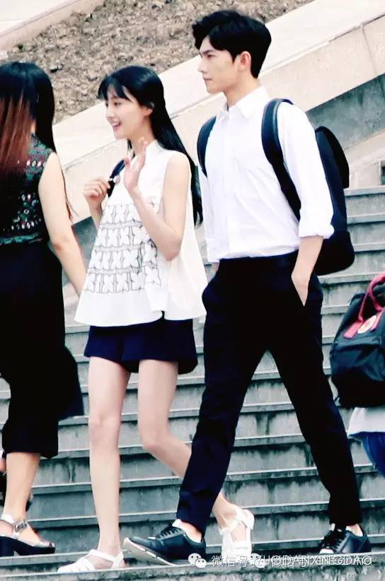 在粉丝拍到的探班照中,郑爽的大学生造型十分清纯,一双长腿引人注目。