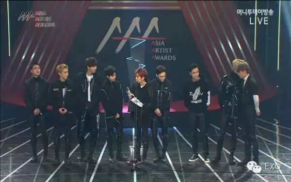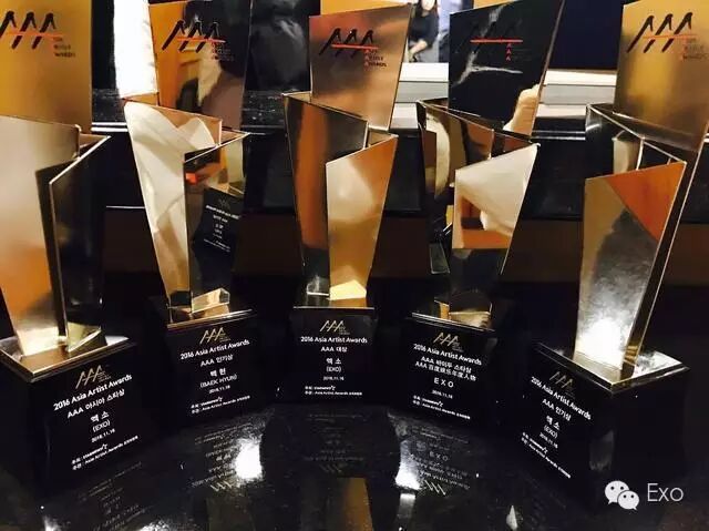 AAA大赏中,EXO可谓是最大的赢家,一口气拿走了五座奖!分别是歌手大獎、百度獎、人氣獎、Asia Star獎与歌手大賞。