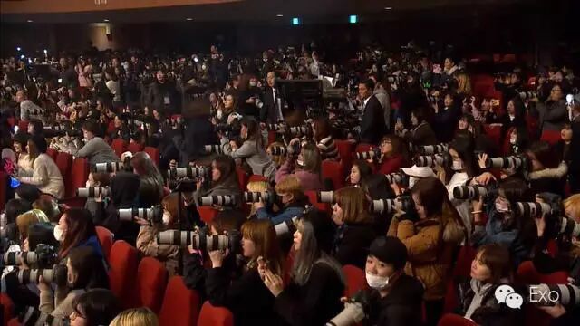 当然,EXO—L的抢眼当然不止这个!除了小狼崽子们的强行出境外,L们也自力更生,实力抢镜。在EXO上台领奖的时候,恭候多时的EXO—L的各位站姐们终于拿出了她们的武器——相机!