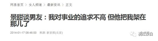在一个采访里,景甜甚至说过:我对事业要求不高,是他(男友)把我架在那儿。