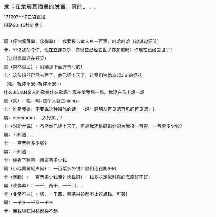 “虽然你已经上天了,但是我还是感谢你能为投100票,100票多少钱?钱多决定我对你的态度好不好”