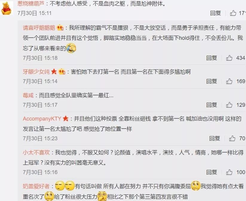 也有人觉得李艺彤热血真诚“难道第二名还要赔笑站在第一名身旁???”