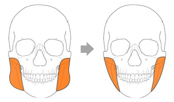 如果牙齿一咬紧两腮就鼓出来大一圈的话,就是咬肌肥大!