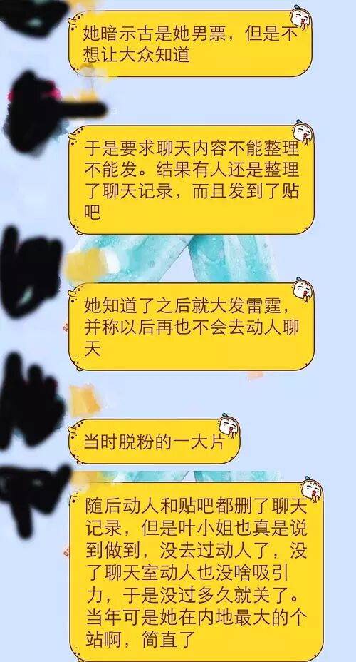 叶璇还特喜欢YY和男明星在一起,有人爆料:曾经在她的论坛里和粉丝聊天,说古天乐对她有意思啥的,粉丝爆出去了她就发飙 ,真是一个大写的服。