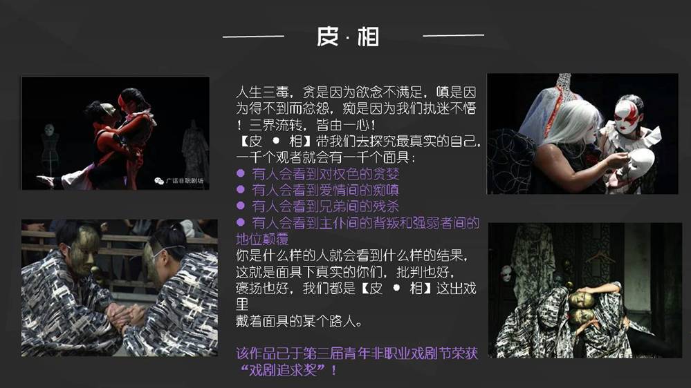 现代舞“皮相”用舞蹈带我们去探究最真实的自己,一千个观众就会有一千个面具,你知道自己的面具是什么吗?让“皮相”告诉你吧!