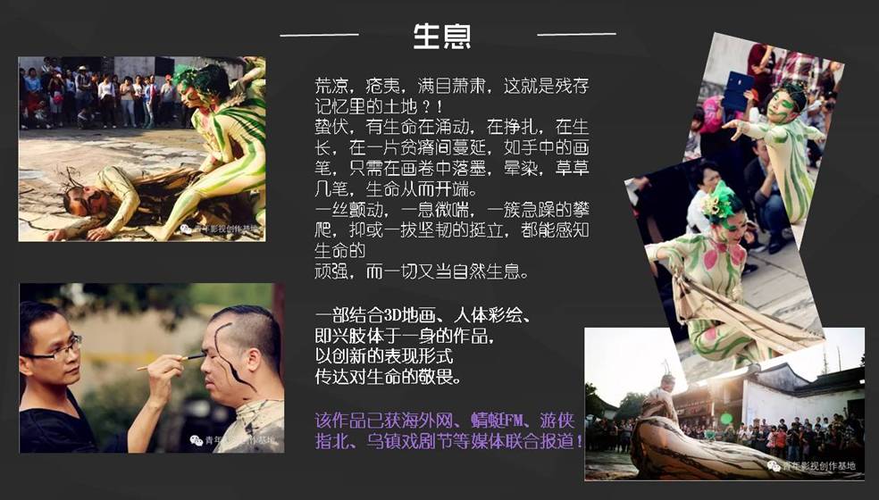 现代舞“生息”一部结合3D地画、人体彩绘,即兴肢体于一体的作品,带你从独特的视觉重新认识生命的意义。