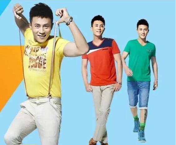当时的七匹狼似乎想模仿海澜之家交通信号灯的风格,于是作了一些改动,变成了蓝紫色(看不太清)、艳绿色、枚红色,还成功地让硬汉胡军、张涵予、张震,变成老年竞走队选手。